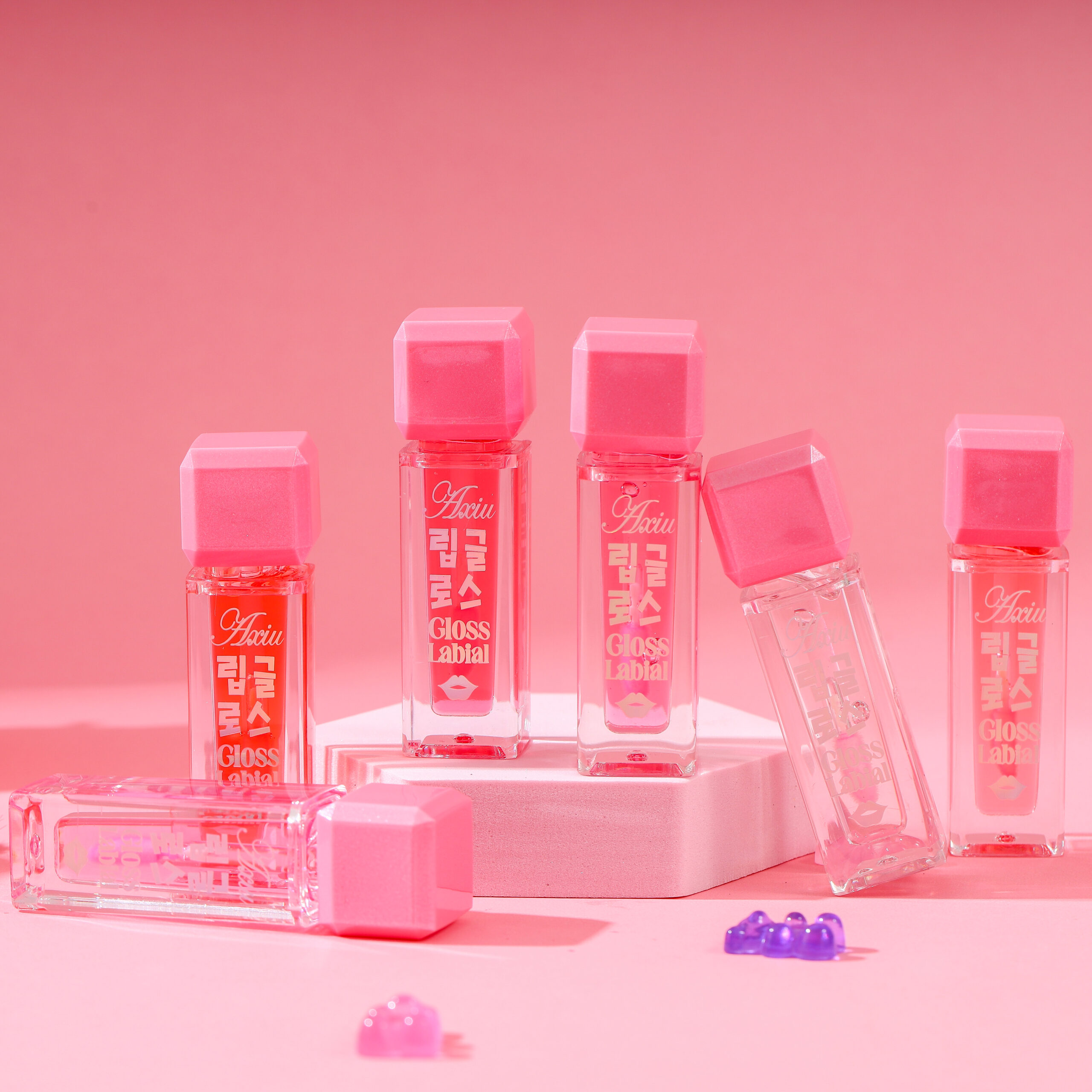 Dipe a cabeça do pincel em quantidade adequada de gloss e aplique uniformemente nos lábios. Aguarde a formação do filme, sobreponha pouco a pouco para obter um efeito de lábios cheios e translúcidos.