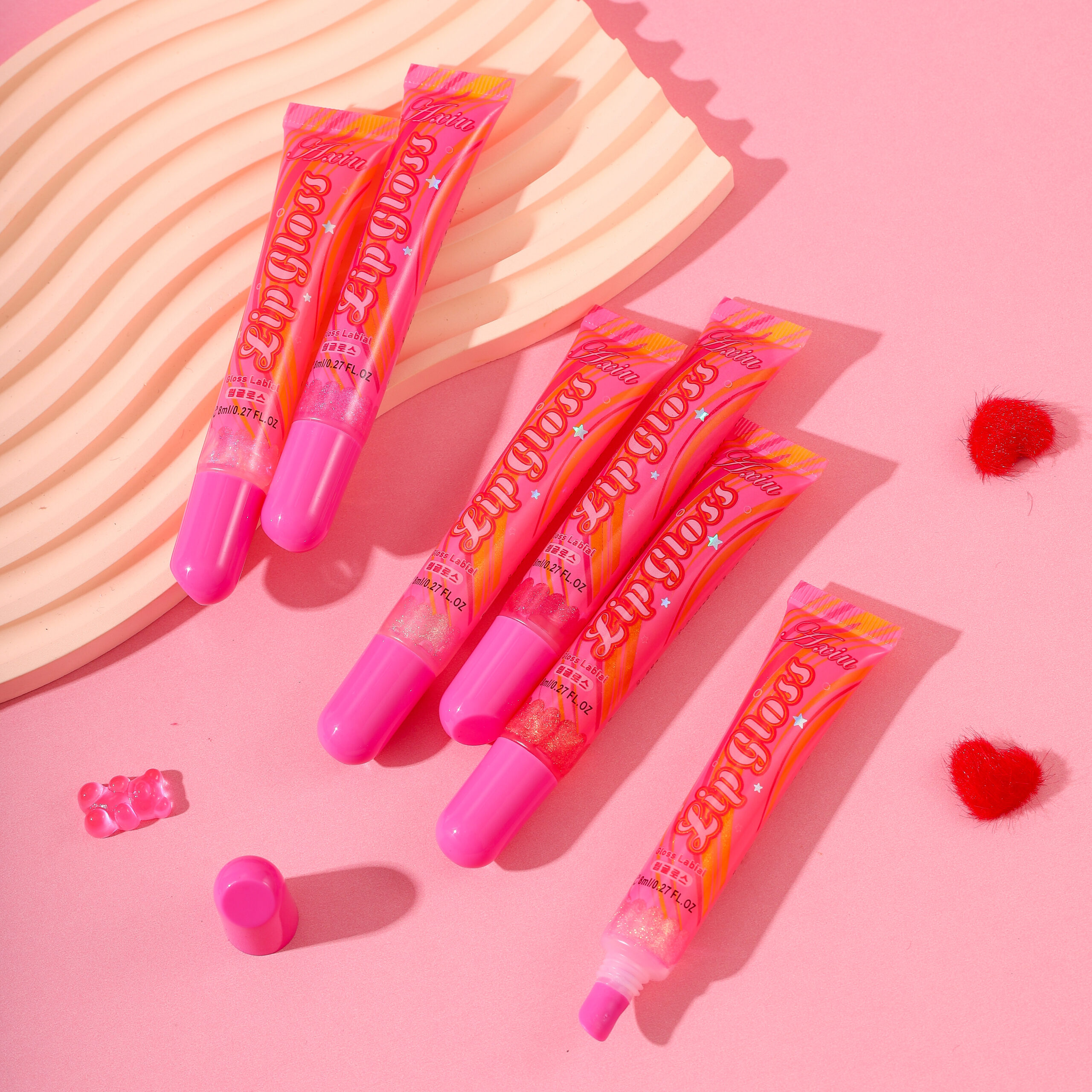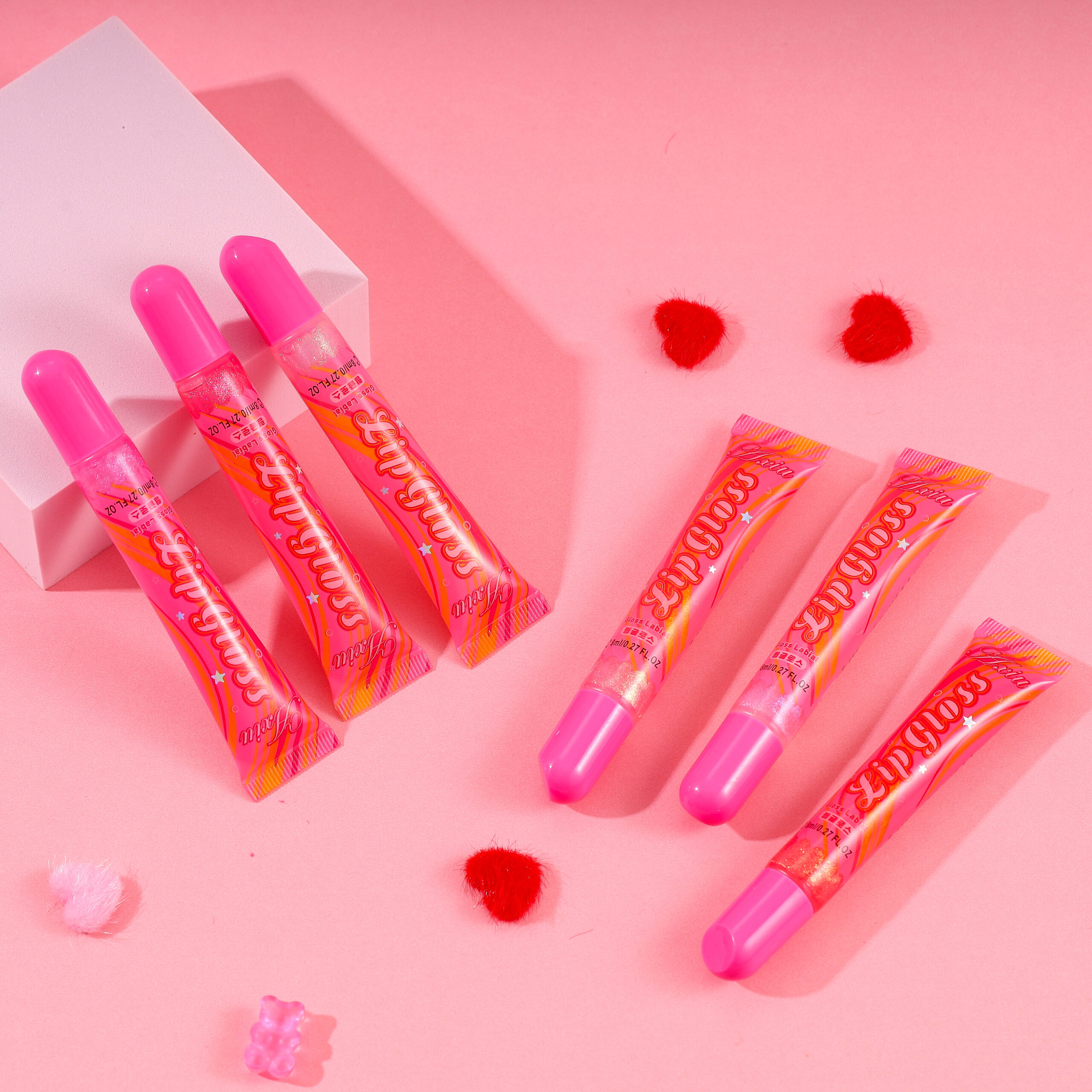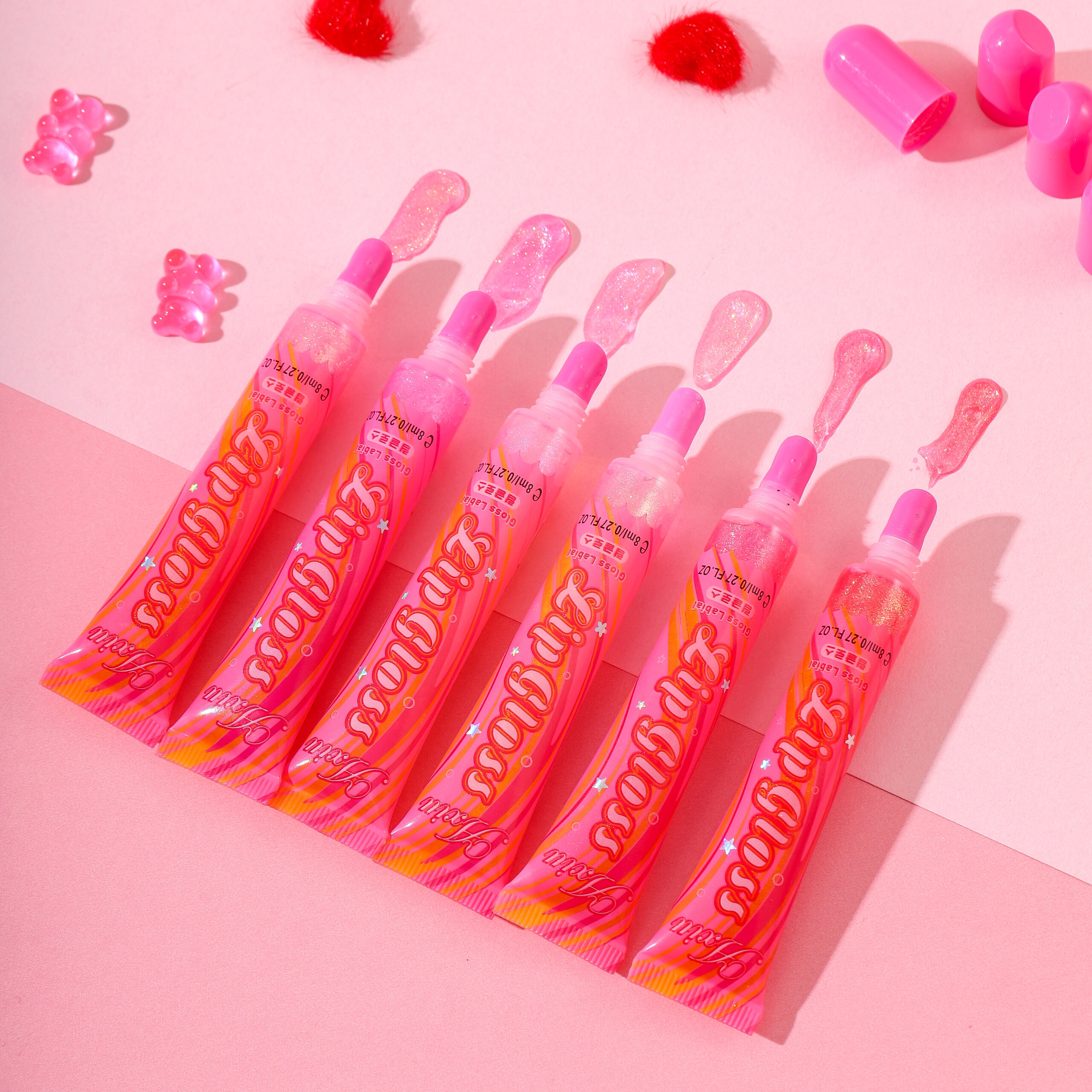 Dipe a cabeça do pincel em quantidade adequada de gloss e aplique uniformemente nos lábios. Aguarde a formação do filme, sobreponha pouco a pouco para obter um efeito de lábios cheios e translúcidos.