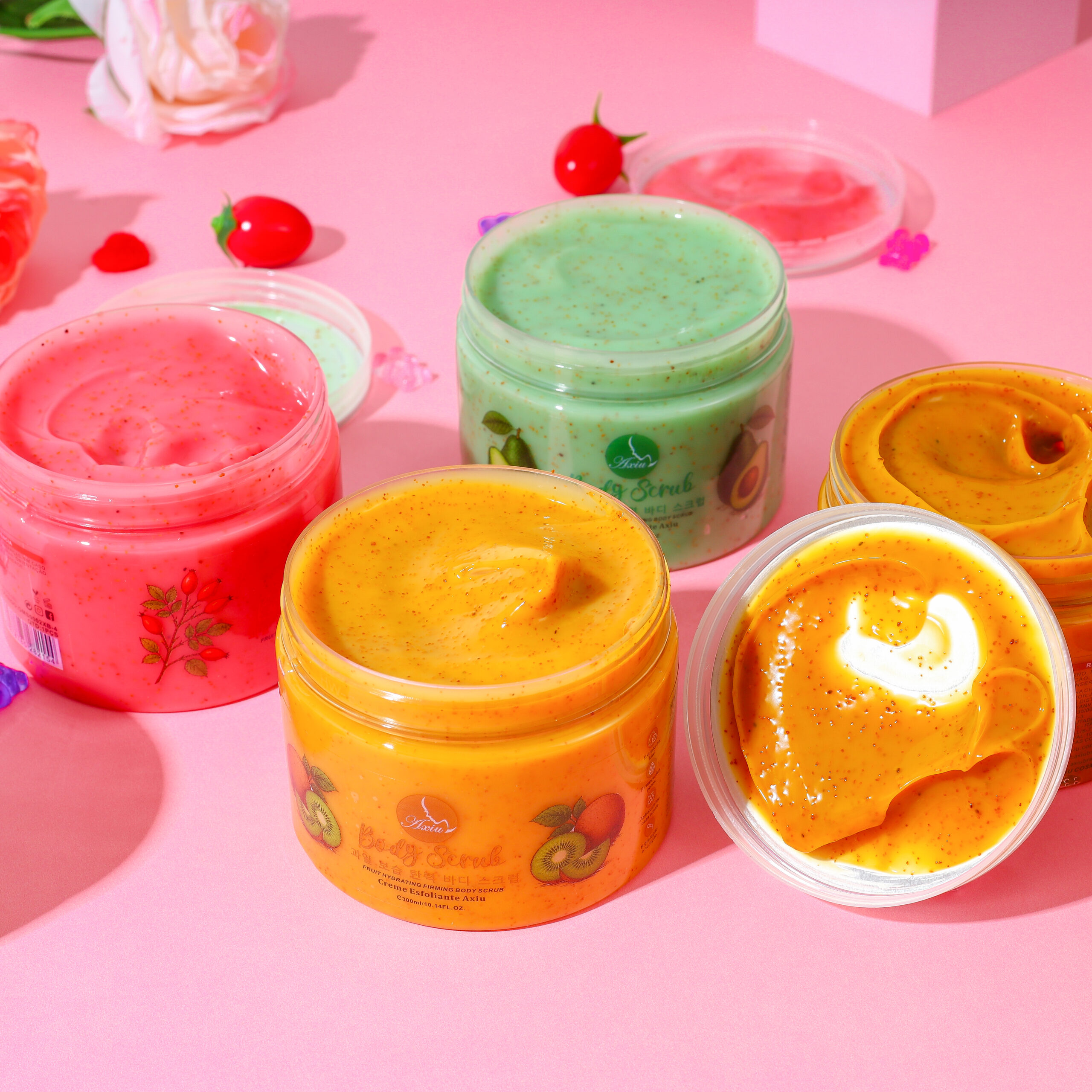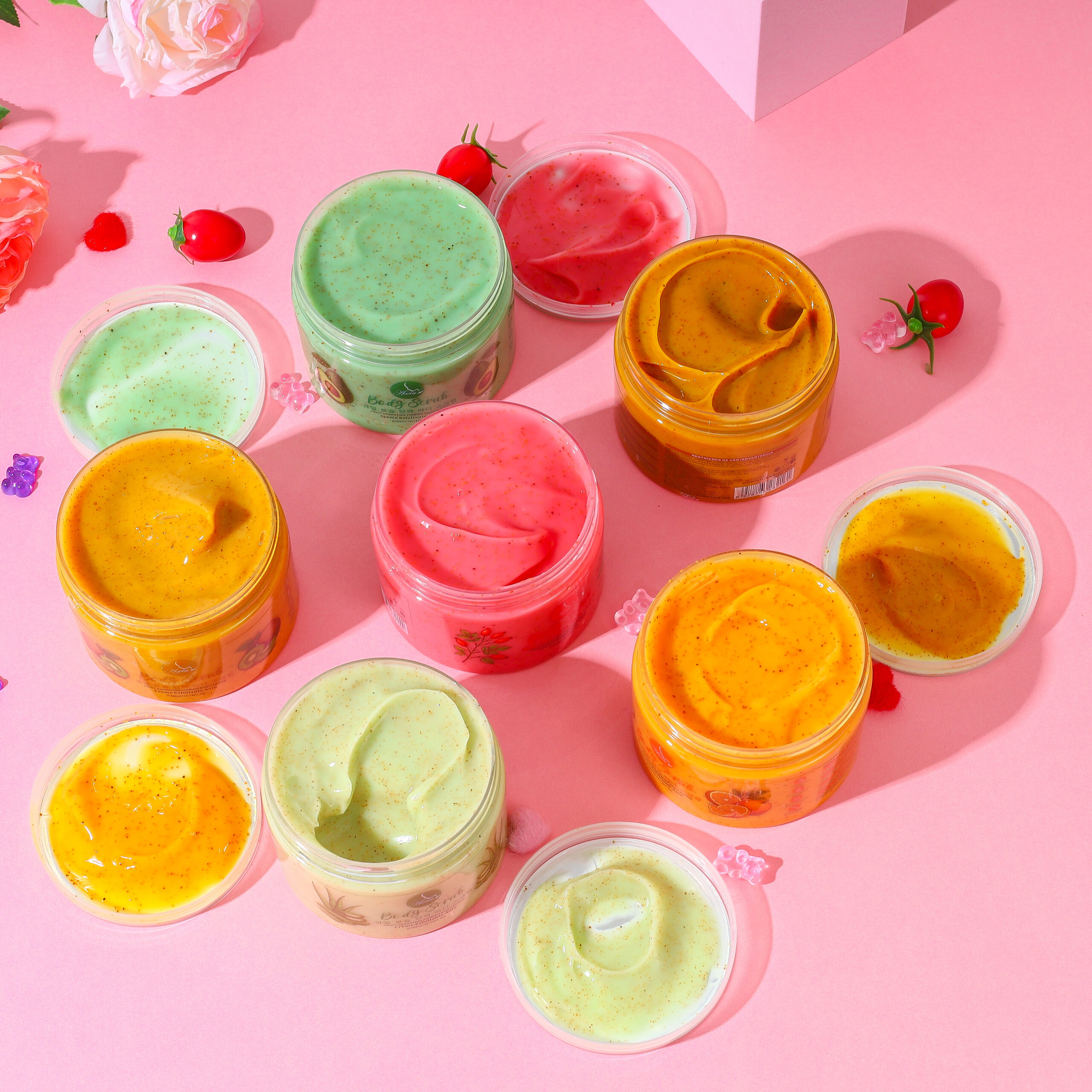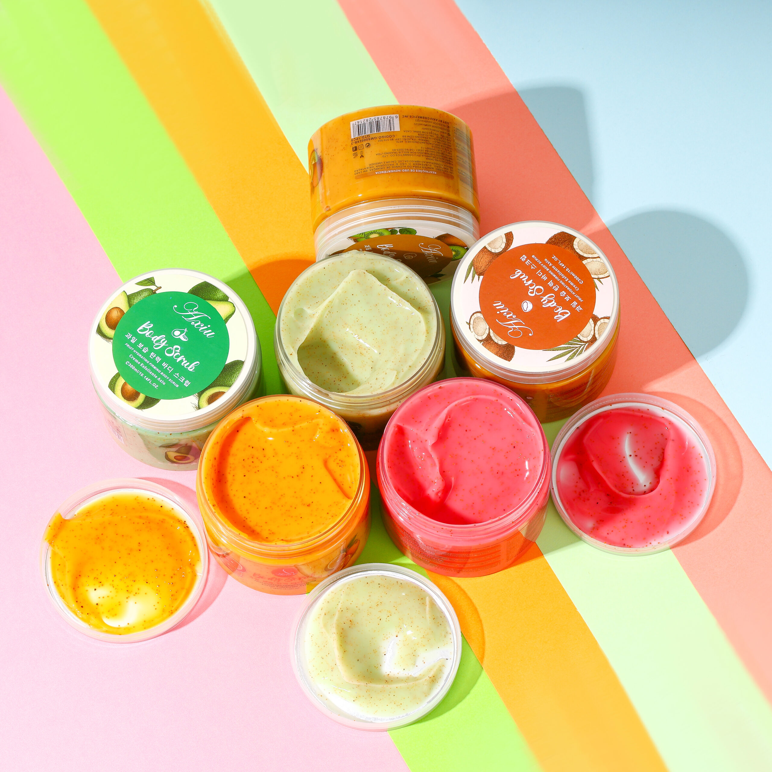 Com extratos de frutas, esfolia suavemente, limpa profundamente as células mortas e impurezas da pele, hidrata e nutre sem deixar a pele repuxada, reafirma a pele e melhora a aspereza, deixando a pele do corpo macia, lisa e elástica